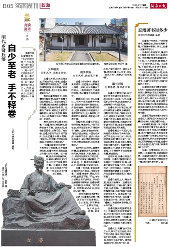丘濬一生博览群书,已尤为可敬;一生笔耕不辍,则更难能可贵。丘濬诗文满天下,单从著书立说来看,也可称其“岂是巨灵伸一臂,遥从海外数中原”。