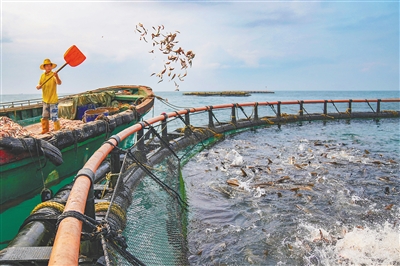 近年来,陵水结合自身优势,坚持往岸上走、往深海走、往休闲渔业走,积极构建现代海洋产业体系,鼓励渔民将养殖业从“浅”向“深”转移,发展深水网箱养殖业,实现生态效益与经济效益同步提升。