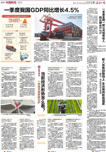 “一季度随着疫情防控较快平稳转段,各项稳增长稳就业稳物价政策举措靠前发力,积极因素累积增多,国民经济企稳回升,开局良好。但也要看到,国际环境仍然复杂多变,国内需求不足制约明显,经济回升基础尚不牢固。”国家统计局新闻发言人付凌晖当日在国新办发布会上说。