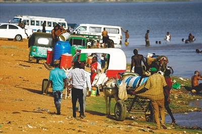 4月17日,由于武装冲突导致停水,苏丹喀土穆市民到尼罗河打水。新华社发