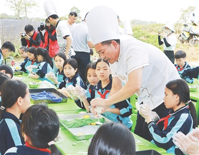 昌江凤梨节活动现场,糕点师在指导同学们制作凤梨糕点。 昌江融媒体中心供图
