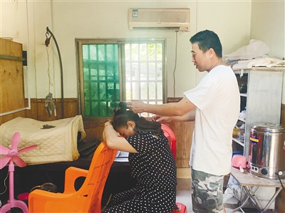 符生冠给患者治疗。 海南日报记者 张文君 摄