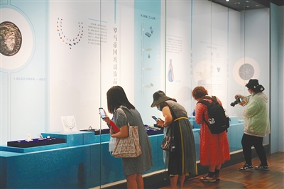 4月20日,观众在海南省博物馆观看“瑠光异彩——丝路上的古玻璃器艺术展”。 海南日报记者 张茂 摄