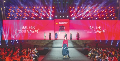 4月27日晚,2023年(第三届)海南锦绣世界文化周在海口开幕。此次文化周以“传承 创新 共创锦绣世界”为主题,旨在打造具有国际影响力的世界锦绣产品展示平台、中国锦绣文化的舞台、海南黎锦苗绣文化与世界交流相融的窗口。图为当天举行的2023年度国际民族时装秀。本报记者 张茂 摄