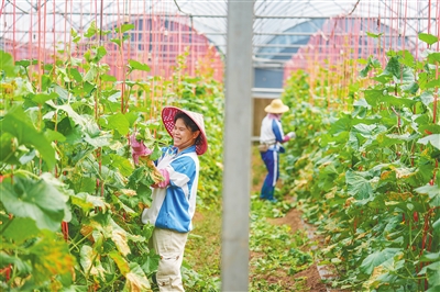 ■ 本报记者 曾毓慧菌菜轮作大棚内,垂吊在藤蔓上的瓜果长势喜人;远处农田连成片,玉米、地瓜等农作物拔节生长;村广场上,村民们有的聚坐在一起拉家常,有的在球场上挥汗如雨……