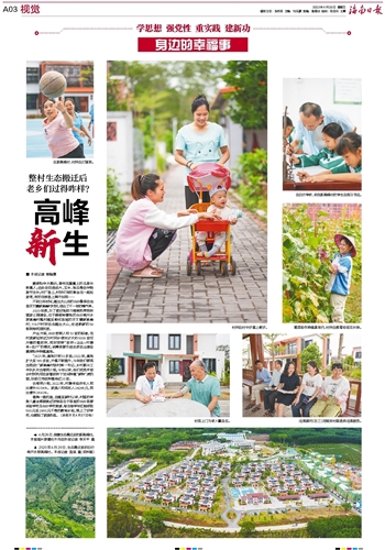 2020年底,为了更好地助力海南热带雨林国家公园建设,位于鹦哥岭腹地的白沙南开乡原高峰村整村搬至毗邻县城的牙叉镇新高峰村,118户村民自此搬出大山,住进崭新的59栋联排两层民居。