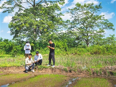 健康地质调查组在进行土壤取样。 本版图片除署名外均由昌江恒科人才工作站提供