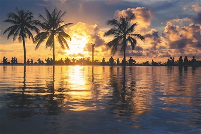 海口从2019年开始建设海口湾畅通工程,布局“三道”(漫步道、跑步道、骑行道)、城市公共空间和服务设施,不仅将海甸溪两岸打造成了移步易景的带状公园,为市民游客营造了更多亲海空间,还串联起沿线的自然风光、历史人文景观、地标建筑,让湾区成为活力海口的展台。当太阳的余晖倾洒在海面上,市民游客纷至沓来,或漫步、或读书、或寻味、或健身,海湾成为承载诗意生活的浪漫空间。