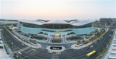 夕阳下的海口国际免税城。 新华社 发