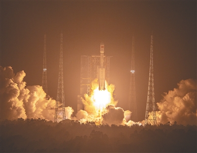 5月10日21时22分,搭载天舟六号货运飞船的长征七号遥七运载火箭,在我国文昌航天发射场点火发射升空。 本报记者 袁琛 摄