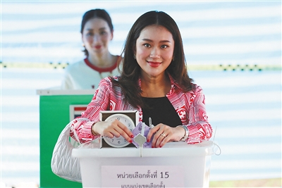 图为为泰党总理候选人贝东丹·西那瓦在泰国曼谷一处投票站参加投票。新华社/路透