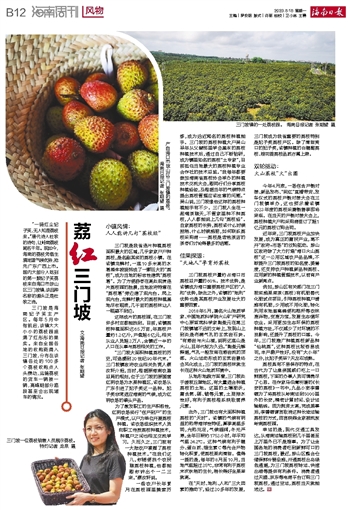 “三门坡大面积种植荔枝的历史,可追溯到20世纪90年代末。”三门坡镇政府农业相关负责人蔡汝轩介绍,当时,根据原海南农垦总局的规划,位于三门坡的原国营红明农场为水果种植区,该农场从广东引进了妃子笑这一品种。妃子笑非常适应海南的气候,成为红明农场的拳头产品。