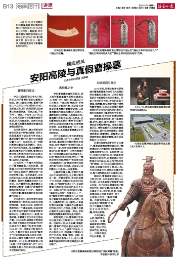 文\本刊特约撰稿 金满楼4月27日,位于河南安阳的曹操高陵遗址博物馆举行开馆仪式后,29日正式对公众开放。据报道,本次高陵遗址博物馆将展出近年出土的近500件(套)精美文物,观众可以一睹为快,能够更直观地了解曹操和他的时代。