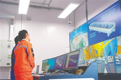 工作人员通过监控设施查看海底数据舱运行情况。 本版图片除署名外均由本报记者 王程龙 摄