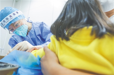 图为一名儿童在北京协和医院急诊科发热门诊看病。 新华社发