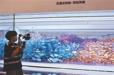 图为一名摄像师在展会上拍摄“灵动花镜”。