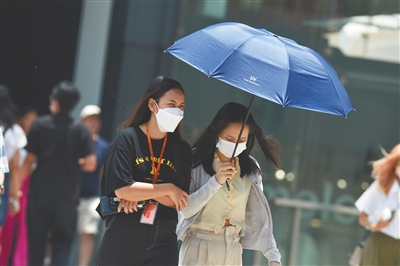 5月17日,行人在泰国曼谷街头用伞遮阳。