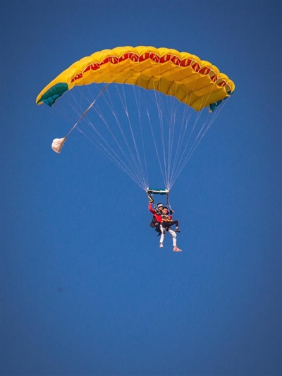 游客在儋州海花岛体验跳伞。特约记者 吴文生 摄