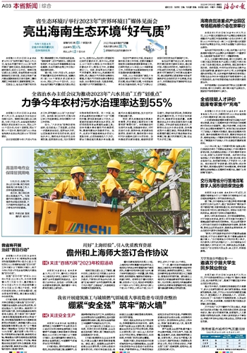 据介绍,今年1月至4月,全省水环境质量状况总体保持优良,城镇内河(湖)104个断面水质达标率为90.4%,同比上升4.8个百分点。2022年全省环境空气质量优良天数比例达98.7%,包括PM2.5在内的5项指标均达到历史最好水平,其中PM2.5浓度从2017年的18微克/立方米降至历史最优水平12微克/立方米,改善幅度达1/3。当前,我省常态化开展大气专项督导,聚焦PM2.5和臭氧协同控制,深入推进大气污染防治精细化管理,打造大气污染防治陵水黎族自治县、白沙黎族自治县、屯昌县样板,逐步提升大气环境管理水平。