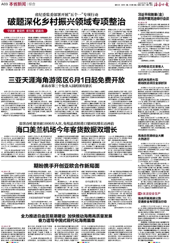全会强调,要加强组织领导,抓好贯彻落实。各市县要细化工作措施,落实好推动高质量发展主体责任。省直相关部门要根据职责分工、结合工作实际制定具体支持方案,开展多种方式的业务指导。各级各部门要严格落实目标、平台、项目、政策、改革、机制、督查考核“七要件”闭环运作体系,明确时间表、路线图、责任人,采取“按季抓、月跟踪”的工作方式,扎实推动各项任务落地见效;完善高质量发展综合评价体系和评估机制,坚持定量与定性、客观评价与主观评价相结合,全面反映海南高质量发展成效,更好反映人民群众满意度和认同感。