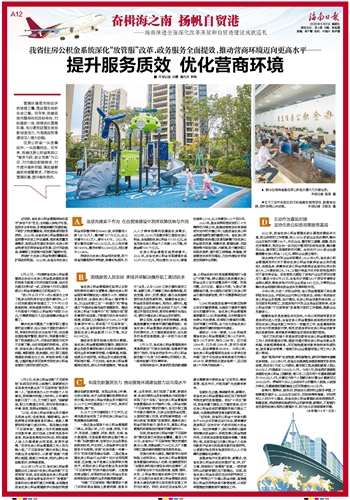 ■ 本报记者 孙慧 通讯员 韩锋营商环境是市场经济的培育之壤,是经营主体的生命之氧。近年来,我省坚持问题导向和目标导向,对标国际一流,持续优化营商环境,充分激发经营主体创新创造活力,为海南自贸港建设注入强大动能。