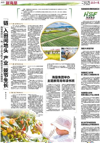“所谓‘一场一品’,并非局限于某一场或某一品,而是从全局角度看待资源调配、产业衔接、链路建设等问题。”海垦集团相关负责人表示,在长期发展中,农场公司围绕农业种养标准化管理和农技人才建设,形成了一套行之有效的专业模式。“一场一品”建设,要在保持农场公司原有生产端口优势的同时,让专业化的产业集团参与销售、加工、研发等各环节。