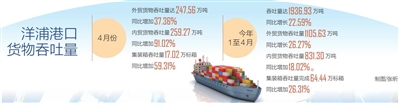 本报讯(记者林书喜 通讯员张裕佳)洋浦港口抢抓经济复苏机遇,全力提升货物吞吐全流程综合管理服务能力,促进港口货物吞吐量大幅增长,4月份货物吞吐量达506.83万吨,同比增加60.41%。据了解,4月份儋州洋浦贸易持续增长,其中,外贸货物吞吐量达247.56万吨,同比增加37.36%;内贸货物吞吐量259.27万吨,同比增加91.02%,集装箱吞吐量17.02万标箱,同比增加59.31%。