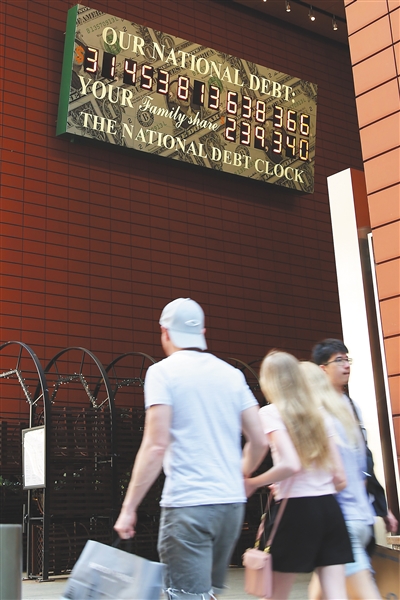 纽约曼哈顿的“国债钟”,它实时更新美国的公共债务总额。