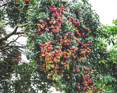 硕果累累的海口市秀英区石山镇儒豪村的野生荔枝树。 清风 摄