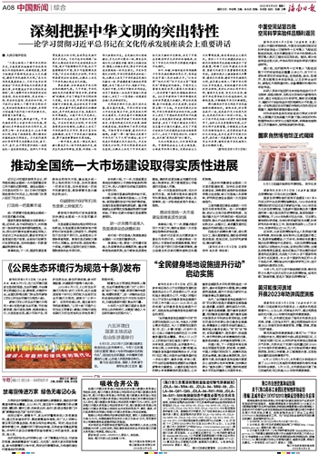 “只有全面深入了解中华文明的历史,才能更有效地推动中华优秀传统文化创造性转化、创新性发展,更有力地推进中国特色社会主义文化建设,建设中华民族现代文明。”在文化传承发展座谈会上,习近平总书记深刻指出“中华优秀传统文化有很多重要元素,共同塑造出中华文明的突出特性”,深入阐释中华文明具有突出的连续性、突出的创新性、突出的统一性、突出的包容性、突出的和平性,对于我们全面深入了解中华文明的历史,更好担负起新的文化使命,共同努力创造属于我们这个时代的新文化,具有重大指导意义。
