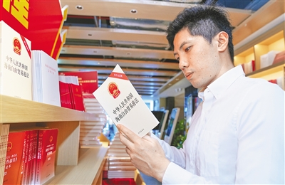 6月9日,位于海口市解放路的新华书店,市民阅读《中华人民共和国海南自由贸易港法》。 本报记者 封烁 摄