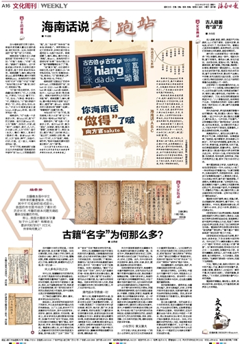 ■ 朱运超当今海南话的日常口语中,保留并使用着大量古汉语的语音、词汇和汉字。比如,生活中常说的“走”“跑”“站”三个动词。