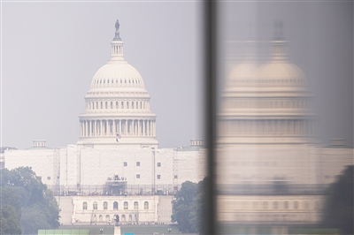 图为6月7日在美国首都华盛顿拍摄的烟尘笼罩的国会大厦。 新华社发