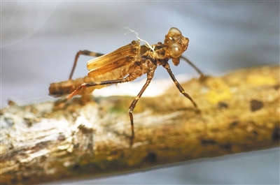 一只正在羽化的蜻蜓。