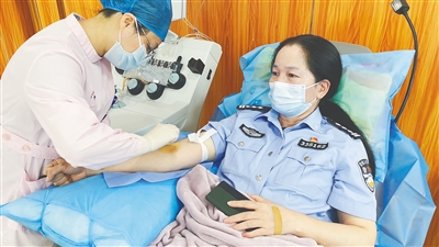 本报海口6月14日讯 (记者良子 通讯员王羽)“姐,您又来啦!”海南省血液中心的护士语气熟稔地跟刚进门的女民警打招呼。6月14日是第20个世界献血者日,也是海口美兰边检站53岁民警邓梓梅第36次献血的日子。海南省血液中心8时开门,邓梓梅7时30分就到了,她希望在这个特殊的日子当第一个无偿献血的人。