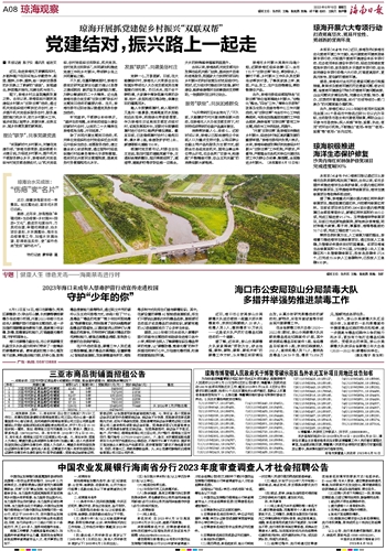 “实现新时代乡村振兴,关键在党建引领。”琼海市委常委、组织部部长占建云说,为促进乡村振兴,提升机关干部服务群众水平,琼海将机关党组织与村党支部连接成对,让“机关党组织、农村党组织双向联系,机关党员、农村党员双向联系”,共同谋划和推进党建工作和乡村振兴,带领群众走上共同富裕之路。