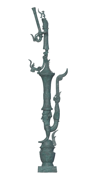 铜兽驮跪坐人顶尊铜像相对完整形态。新华社发