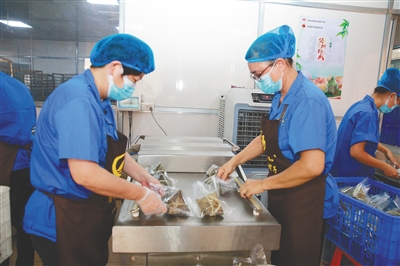 经过近20年的努力,广和食品公司推出的儋州粽久负盛名,不仅在岛内销售,还走向全国市场。目前,儋州共有粽子生产企业60多家。随着端午节的临近,各家企业订单不断。