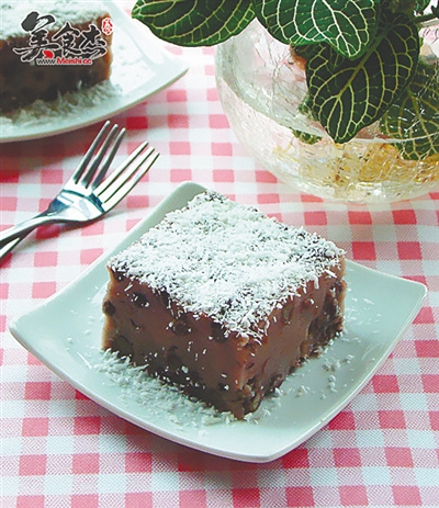 椰香红豆糕。