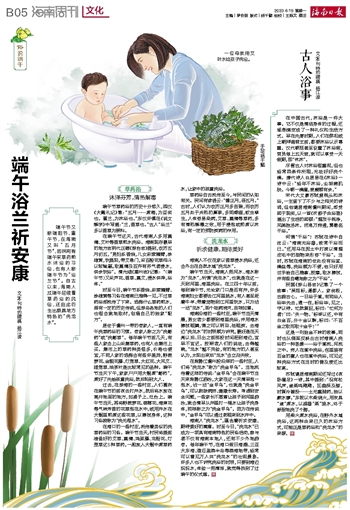 文\本刊特约撰稿 杨江波端午节又称端阳节、重午节,在海南又叫“五月节”,因民间有端午采草药煎水沐浴的习俗,也有人称端午节为“浴兰节”。自古以来,海南人过端午延续着草药浴的风俗,还由此衍生出颇具地方特色的“洗龙水”。