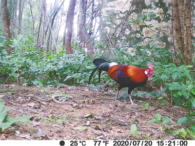 ④一只悠游自在的红原鸡。海口畓榃湿地研究所 提供