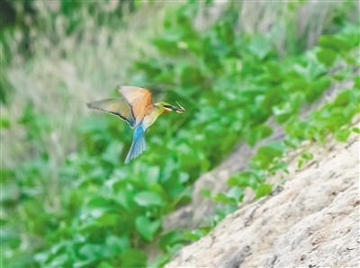 6月18日,有“中国最美小鸟”美誉的蜂虎鸟在澄迈县花场湾自然生态保护区觅食。 据观测和统计,今年来此繁衍生息的蜂虎鸟超过500只。据悉,花场湾花场村3054.9亩养殖塘完成退塘还湿工作后,生态环境逐步改善,成就了蜂虎鸟在此成群飞翔觅食的美好图景。 本组图片由 本报记者 李天平 摄