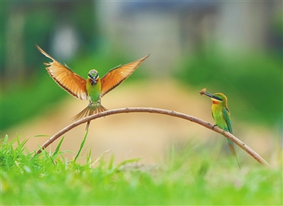 在澄迈县花场湾自然生态保护区,蜂虎鸟为雏鸟捕食。