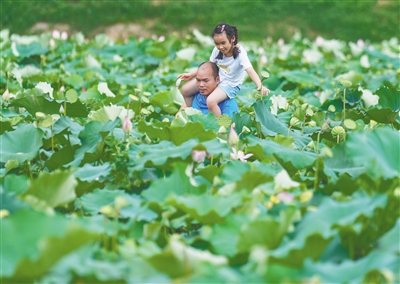 据了解,美山村在2022年采取“公司+村委会+农户”的模式打造莲花产业种植基地,不仅盘活村里撂荒地,还带动当地村民一同致富。目前,基地共500多亩,每亩产量水果莲800斤左右,每亩莲花有5000至6000朵,并设立莲文化长廊供游客休息、玩赏。本报记者 李天平 摄