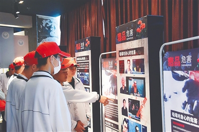 昌江中学学生在该县新时代文明实践中心禁毒展馆参观。