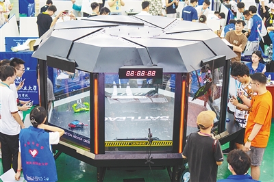 “撞击!”“掀翻!”在钢化玻璃围成的擂台旁,不时爆发阵阵呼喊声和叫好声。不过对弈双方并非拳击赛手,而是两台模样奇怪的格斗机器人。
