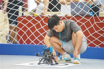 无人机飞行,不靠老练的“机手”操控遥控器,而靠在电脑程序里提前设定的一串串代码。比赛开始,选手们在电脑前飞快敲击键盘,一串串代码在屏幕前快速闪烁。