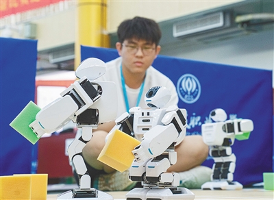 参赛选手在测试机器人。