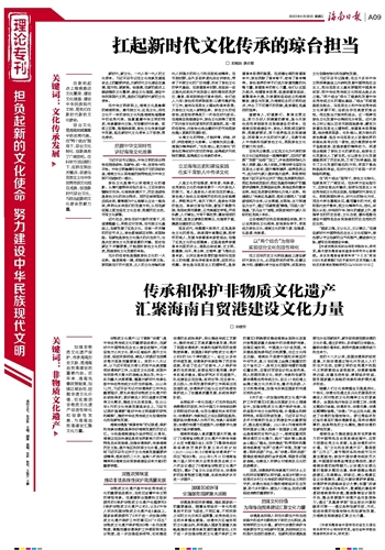 “国家之魂,文以化之,文以铸之。”在建设新时代中国特色社会主义文化征程中,琼台要以守正创新的正气和锐气,赓续琼州文脉、谱写自贸港建设华章。
