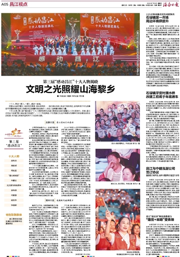 一个个充满正能量的身边榜样,一段段书写不平凡的鲜活故事,让昌江人民在感动中见证精神的力量。